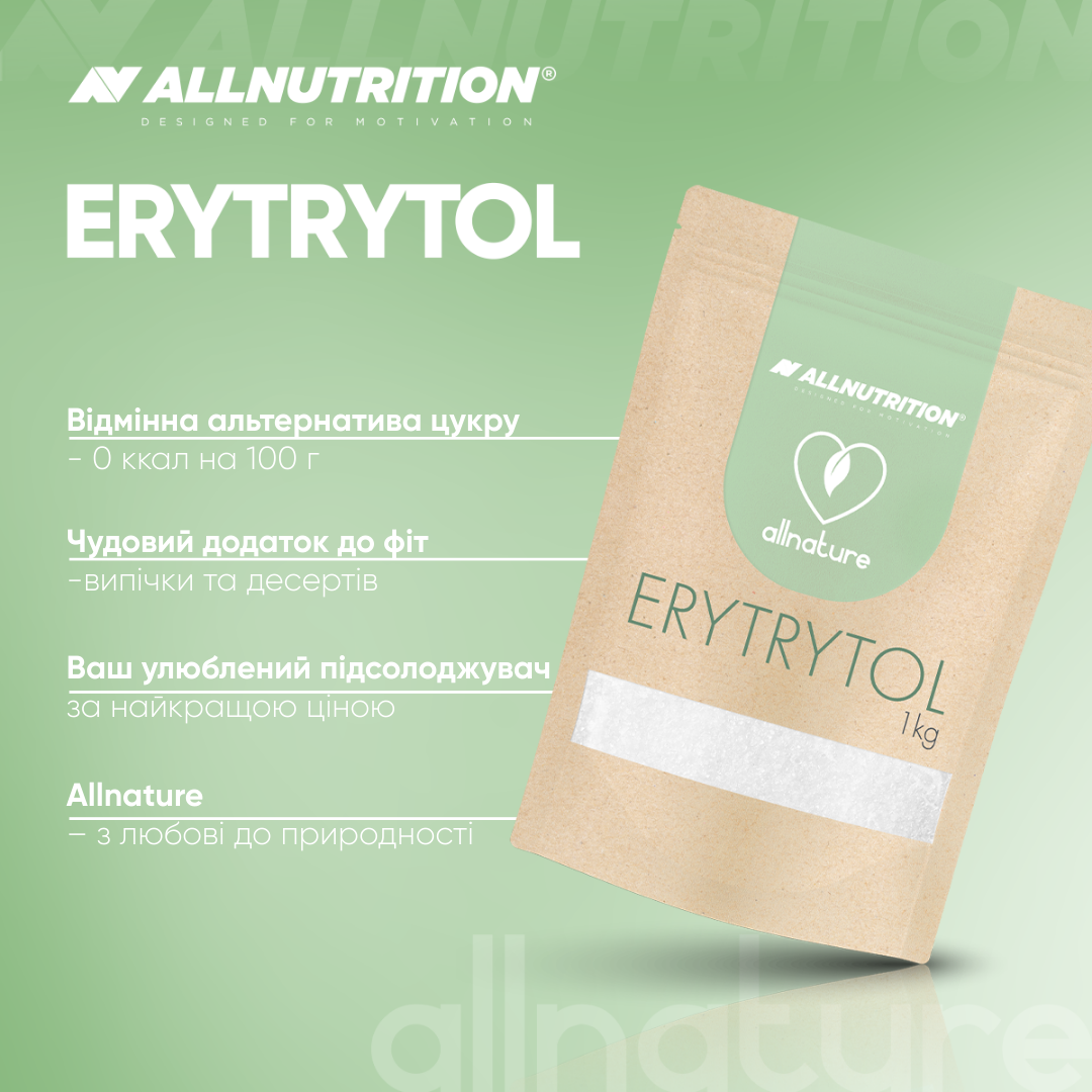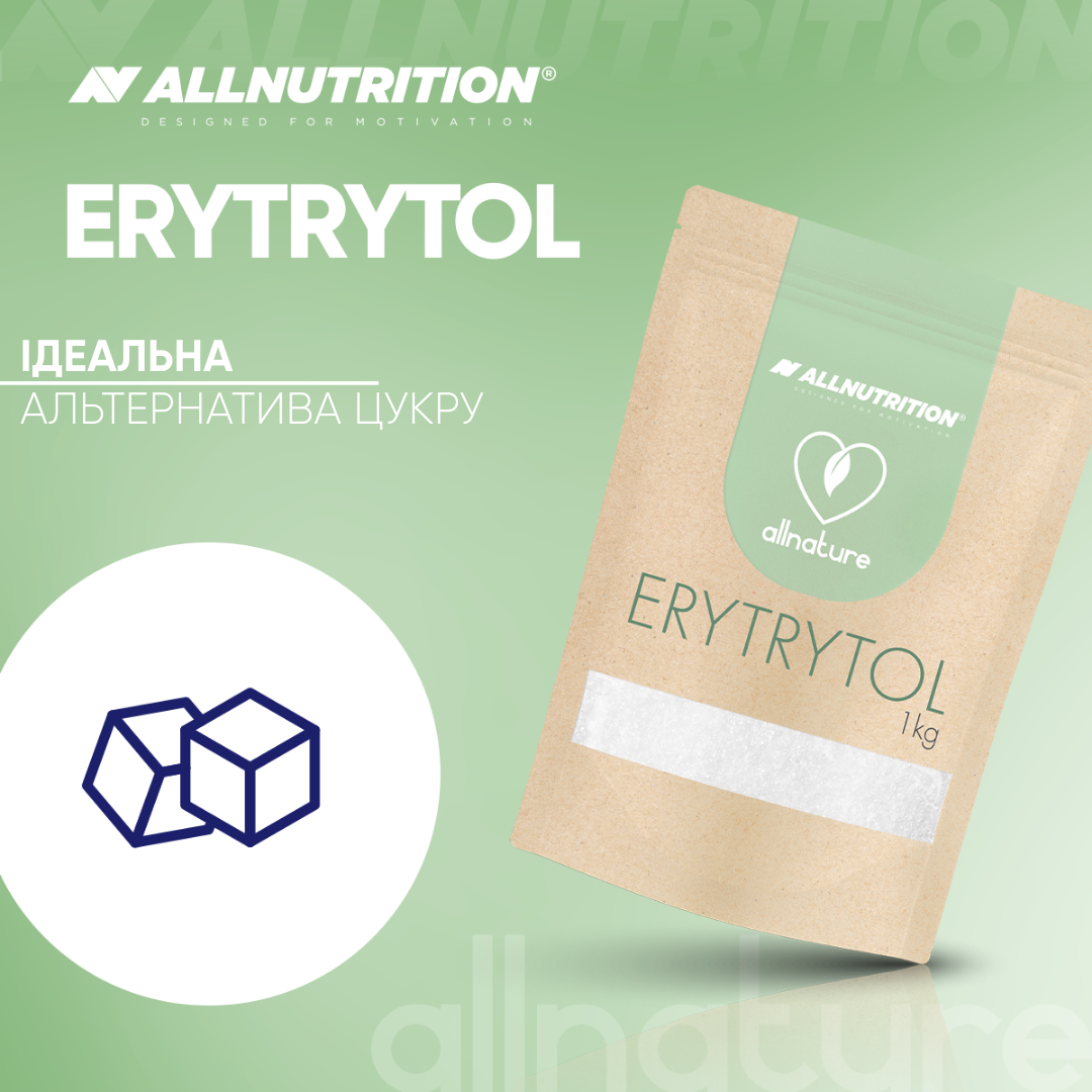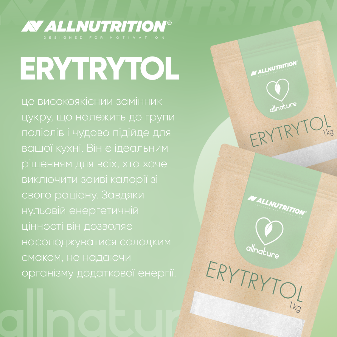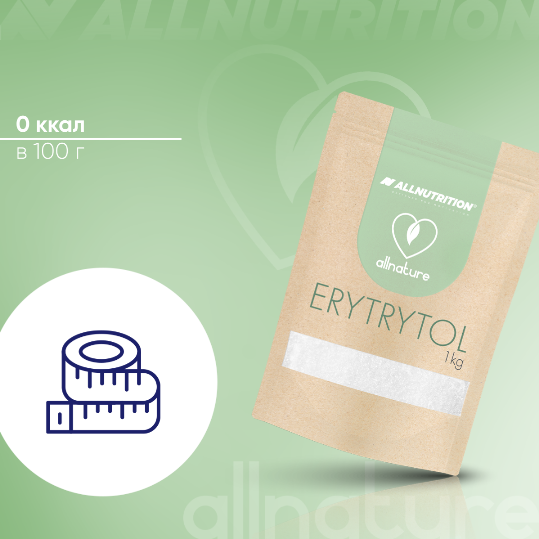 ALLNATURE ERYTRITOL — це високоякісний замінник цукру з групи поліолів, який чудово підходить для твоєї кухні. Це ідеальне рішення для всіх, хто хоче усунути зайві калорії зі свого раціону. Завдяки нульовій енергетичній цінності дозволяє насолоджуватися солодким смаком без додаткового надходження енергії в організм.