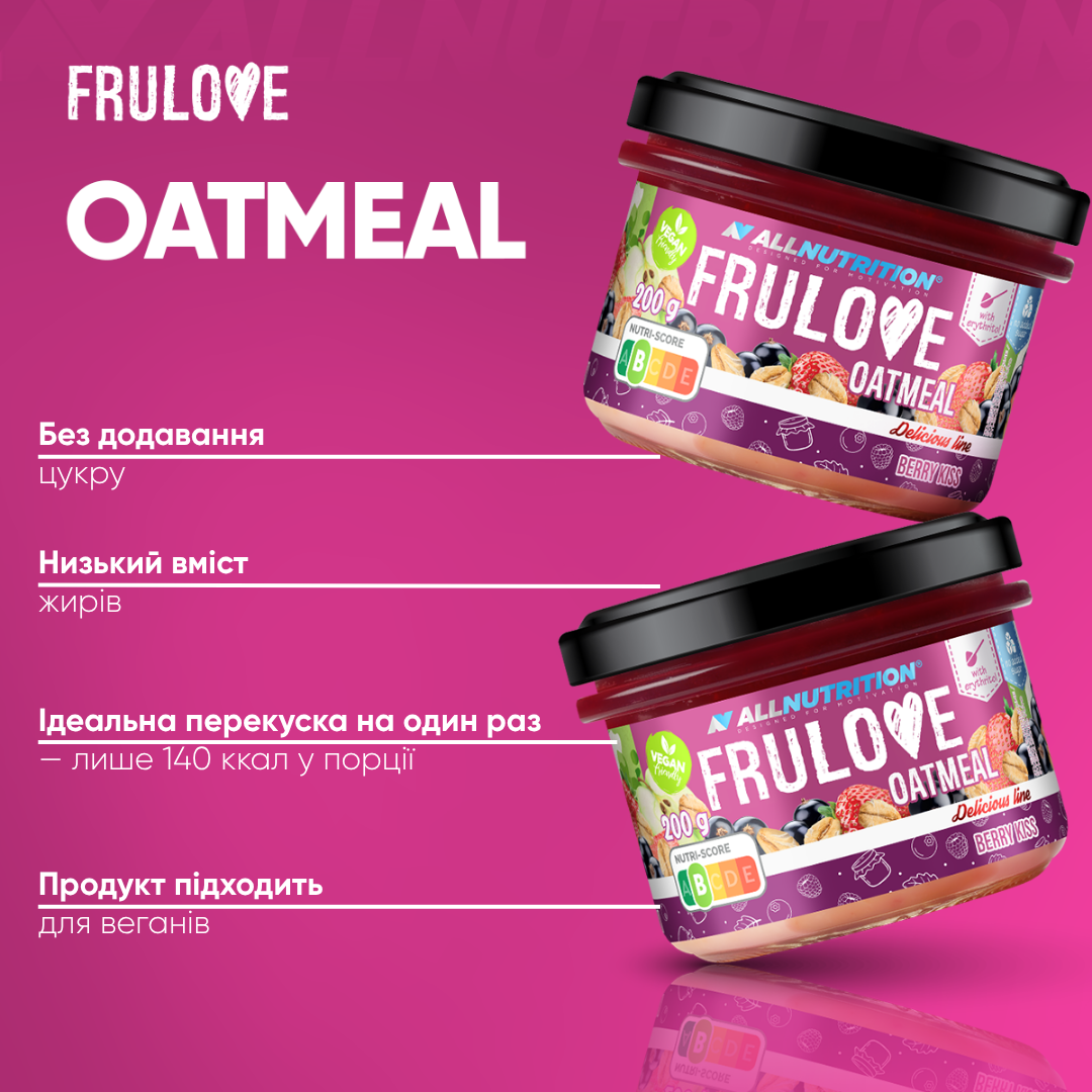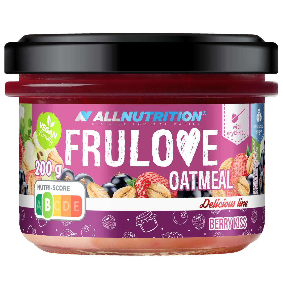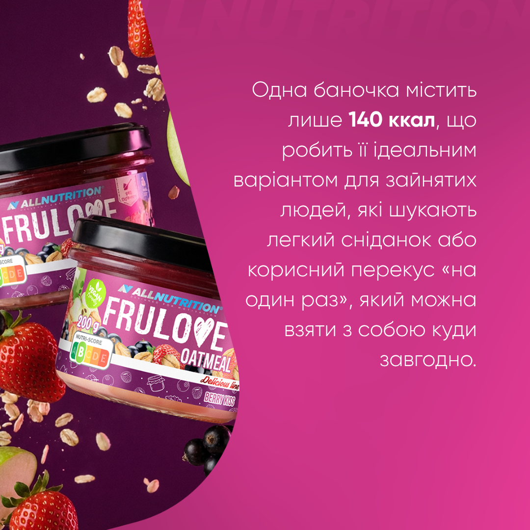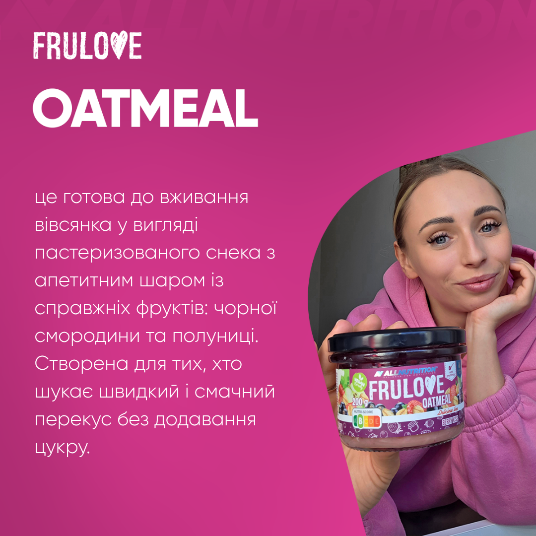 вода, czarna porzeczka (9,5 %), płatki owsiane (7 %), truskawka (6,3 %), koncentrat soku jabłkowego (4,3 %), підсолоджувач: еритритол, ріпакова олія, рисовий крохмаль, ароматизатор, концентрат соку чорної моркви, регулятор кислотності: лимонна кислота, підсолоджувач: сукралоза