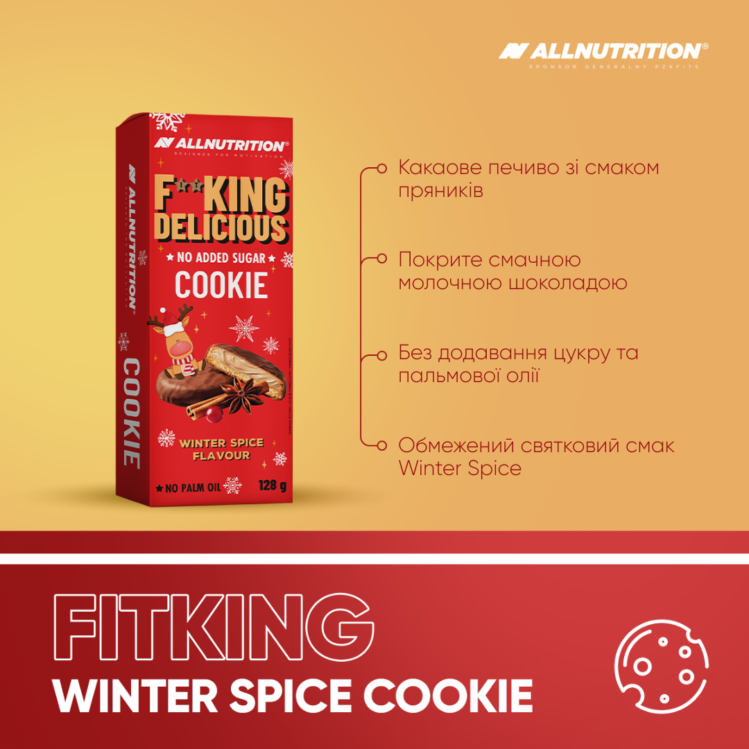 czekolada mleczna bez dodatku cukrów 27 % [substancja słodzaca: maltitole, mleko pełne w proszku, tłuszcz kakaowy, miazga kakaowa, serwatka w proszku [z mleka], emulgator: lecytyny [z soi]], nadzienie o smaku piernikowym bez dodatku cukrów 25 % [substancja słodząca: maltitole, tłuszcz roślinny (olej kokosowy, olej rzepakowy), суха сироватка [з молока], сухе молоко знежирене, przyprawa do pierników 0,75 % (cynamon, kardamon, anyż, goździki), aromat], пшеничнеборошно, tłuszcz roślinny (olej kokosowy, olej rzepakowy), підсолоджувач: мальтитол, розпушувач: карбонати натрію, сіль