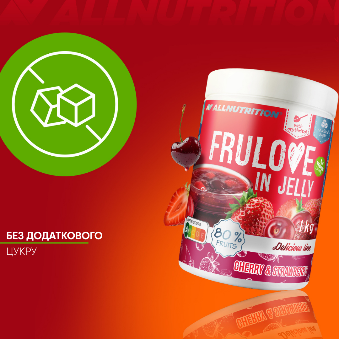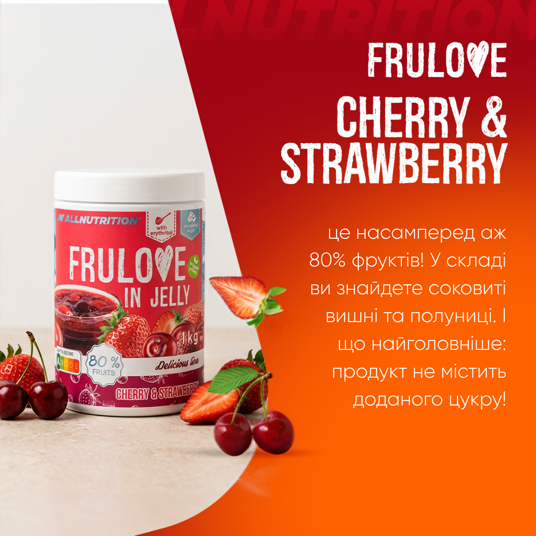 wiśnia 40 %, truskawka 40 %, вода, підсолоджувачі: еритритол, сукралоза, крохмаль, koncentrat soku z czarnej marchwi (czarna marchew, regulator kwasowości: kwas cytrynowy), ароматизатор, консервант: сорбат калію