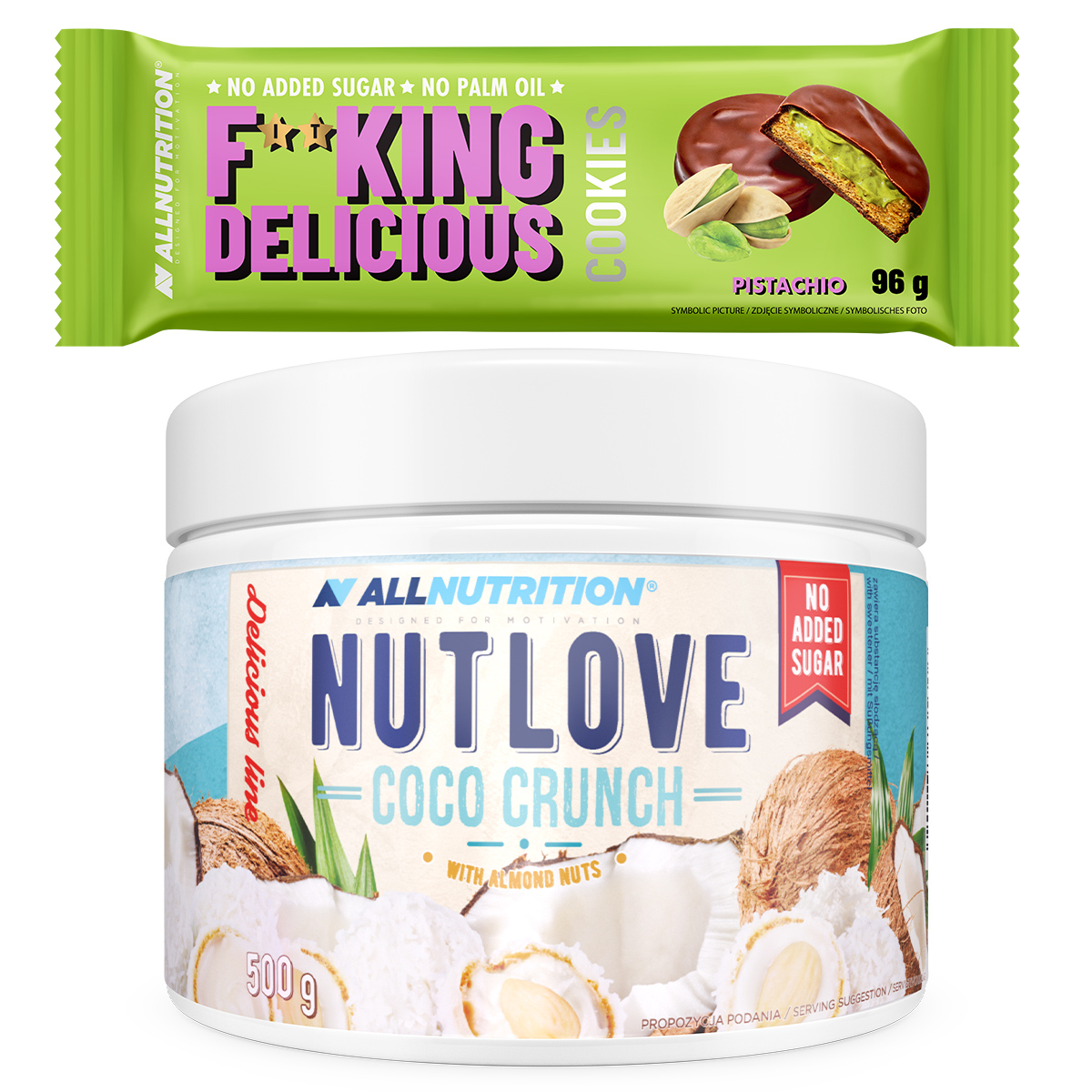 NUTLOVE COCO CRUNCH це смачний кокосовий крем з додаванням хрустких мигдальних горіхів. Це ще одна версія смачного крему від бренду ALLNUTRITION, яка неодмінно сподобається вам. Вже перший шматочок перенесе вас у світ кремових кульок, посипаних смачною кокосовою стружкою.