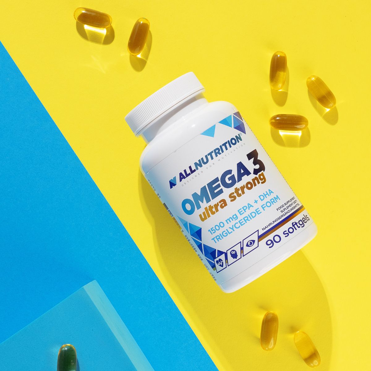 ALLNUTRITION OMEGA 3 ULTRA STRONG — це дієтична добавка у формі м’яких капсул, яка є концентрованим джерелом омега-3 жирних кислот (EPA та DHA), а також вітаміну E. Створена для активних людей і тих, хто дбає про своє здоров’я та хоче легко доповнити свій раціон цими важливими поживними речовинами.