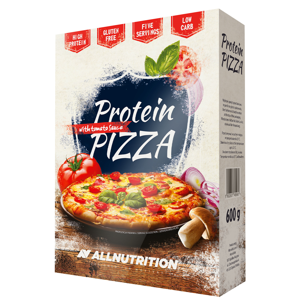 тісто: концентрат сироваткового білка [з молока]., ізолят соєвого білка, казеїнат кальцію [з молока], картопляний крохмаль, картопляна клітковина, яєчний порошок курячий, порошок курячого яєчного білка, дріжджовий екстракт, прованські трави, екстракт паприки, сіль, розпушувачі: дифосфат натрію, карбонат натрію, загусник: гідроксипропілметилцелюлоза, томатний соус: томатний порошок, дріжджовий екстракт, концентрат соєвого білка, екстракт паприки