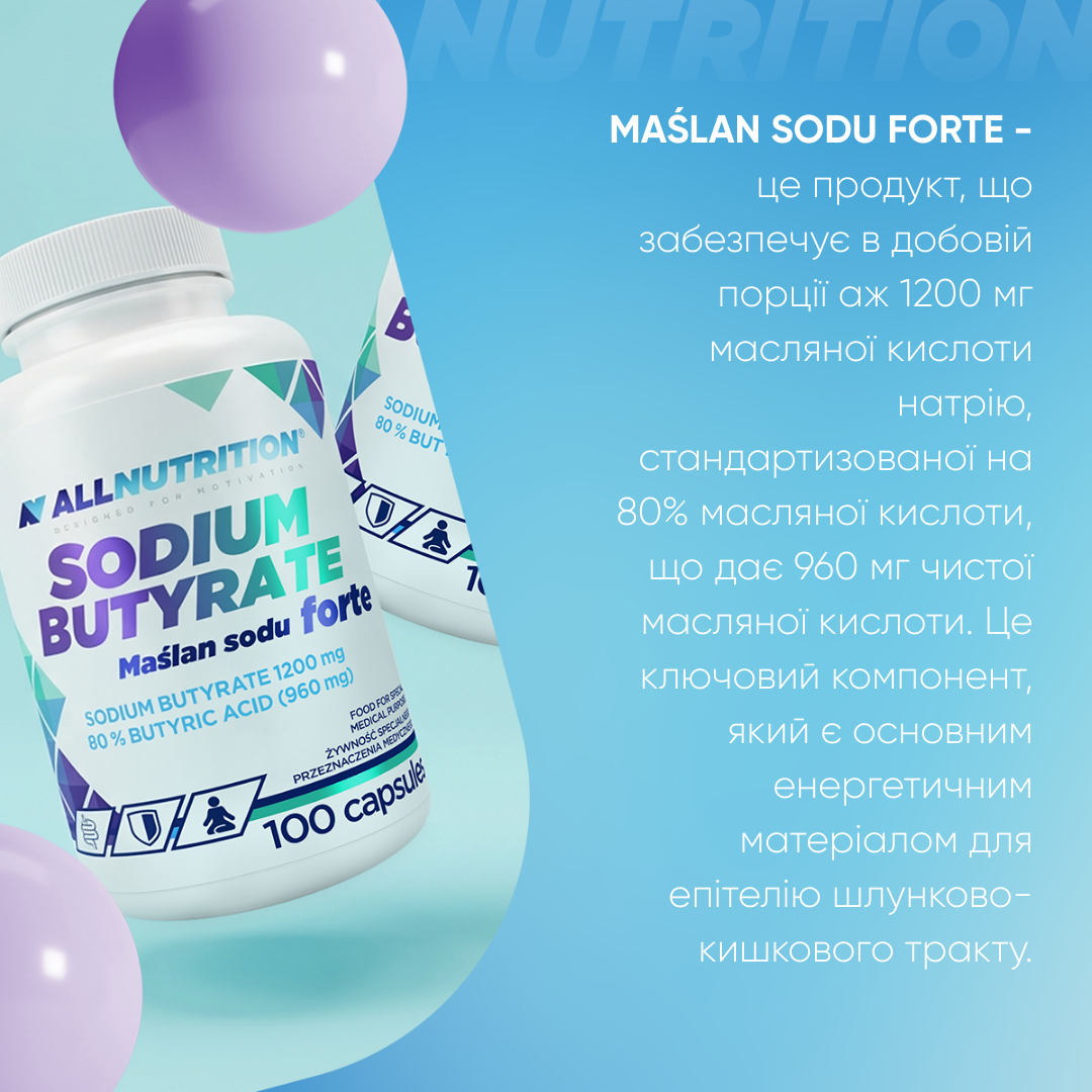 бутират натрію, оболонка капсули (желатин), оболонка мікрокапсули (крохмаль), антизлежувачі: діоксид кремнію, магнієві солі жирних кислот