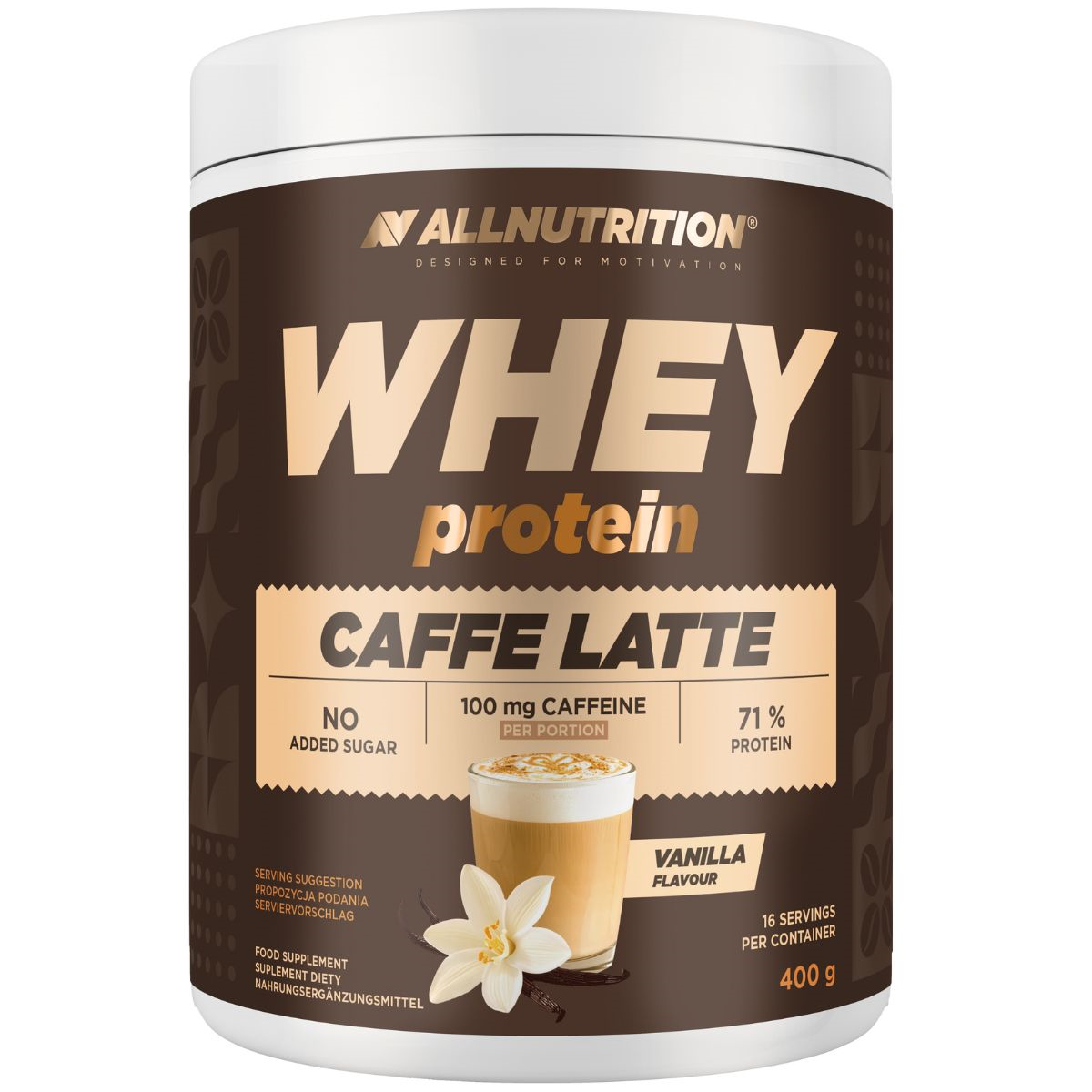 концентрат сироваткового білка (90%) [з молока], розчинна кава (7,5%), ароматизатор, безводний кофеїн (0,25%), емульгатор: лецитини, підсолоджувач: стевіолові глікозиди зі стевії