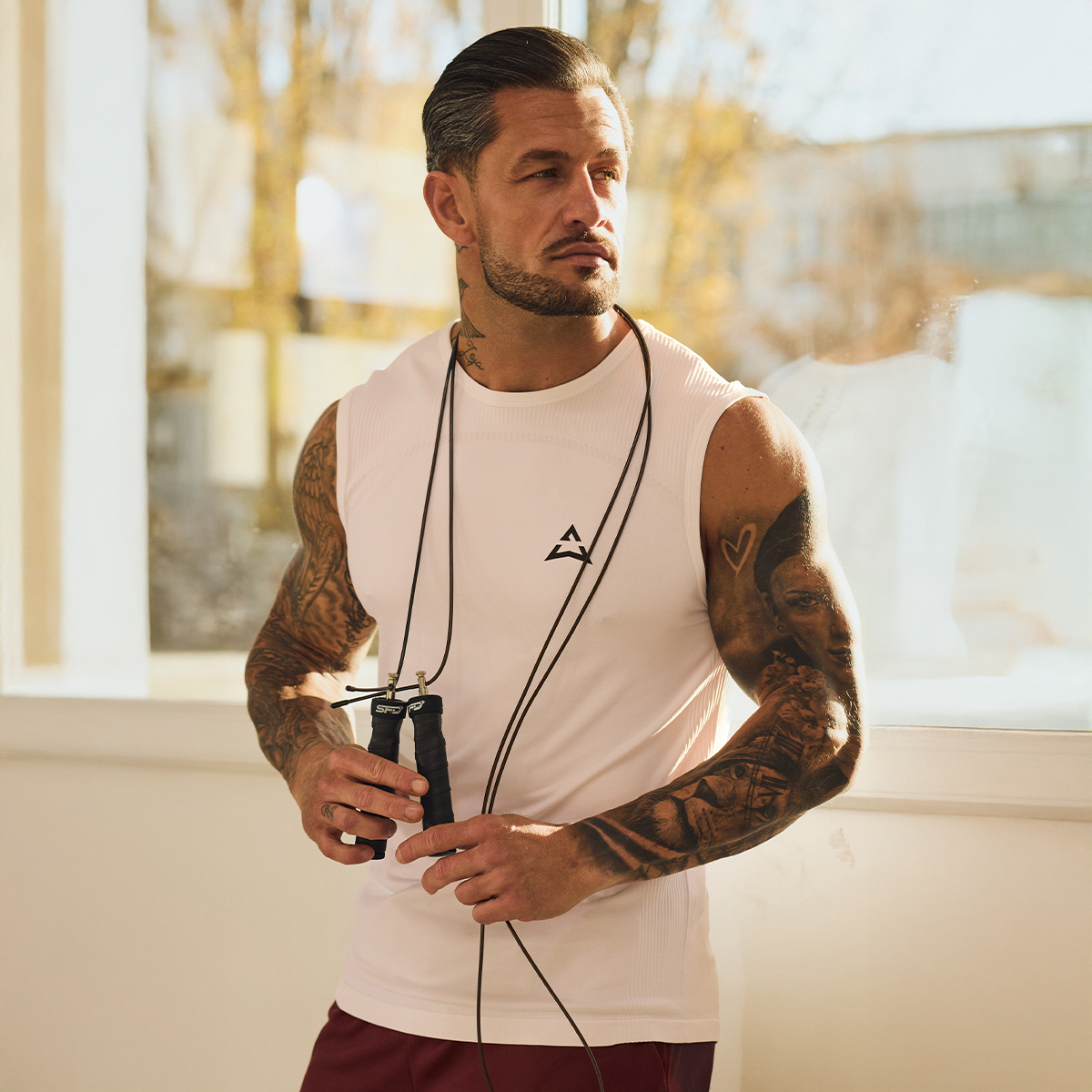 Забудь про подразнення. Безшовна технологія та відсутність бічних швів усувають ризик натирань навіть під час інтенсивних тренувань. М’який, дихаючий матеріал відводить вологу та швидко сохне, забезпечуючи відчуття свіжості. Завдяки цьому TANK TOP ідеально підходить не лише для тренувань, а й для прогулянок чи відпочинку на пляжі.