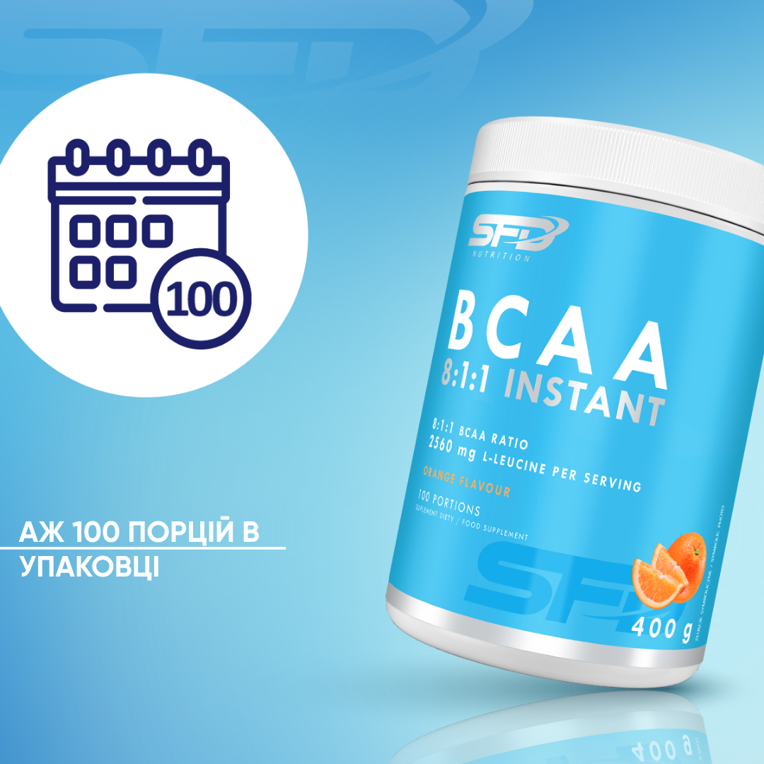 SFD BCAA 8:1:1 — це комплекс розгалужених амінокислот у співвідношенні 8:1:1 (l-лейцин : l-валін : l-ізолейцин), створений для спортсменів, які інтенсивно тренуються, та фізично активних людей. Домінуюча доза лейцину — ключової амінокислоти з групи BCAA — підтримує організм як під час тренування, так і у фазі відновлення.