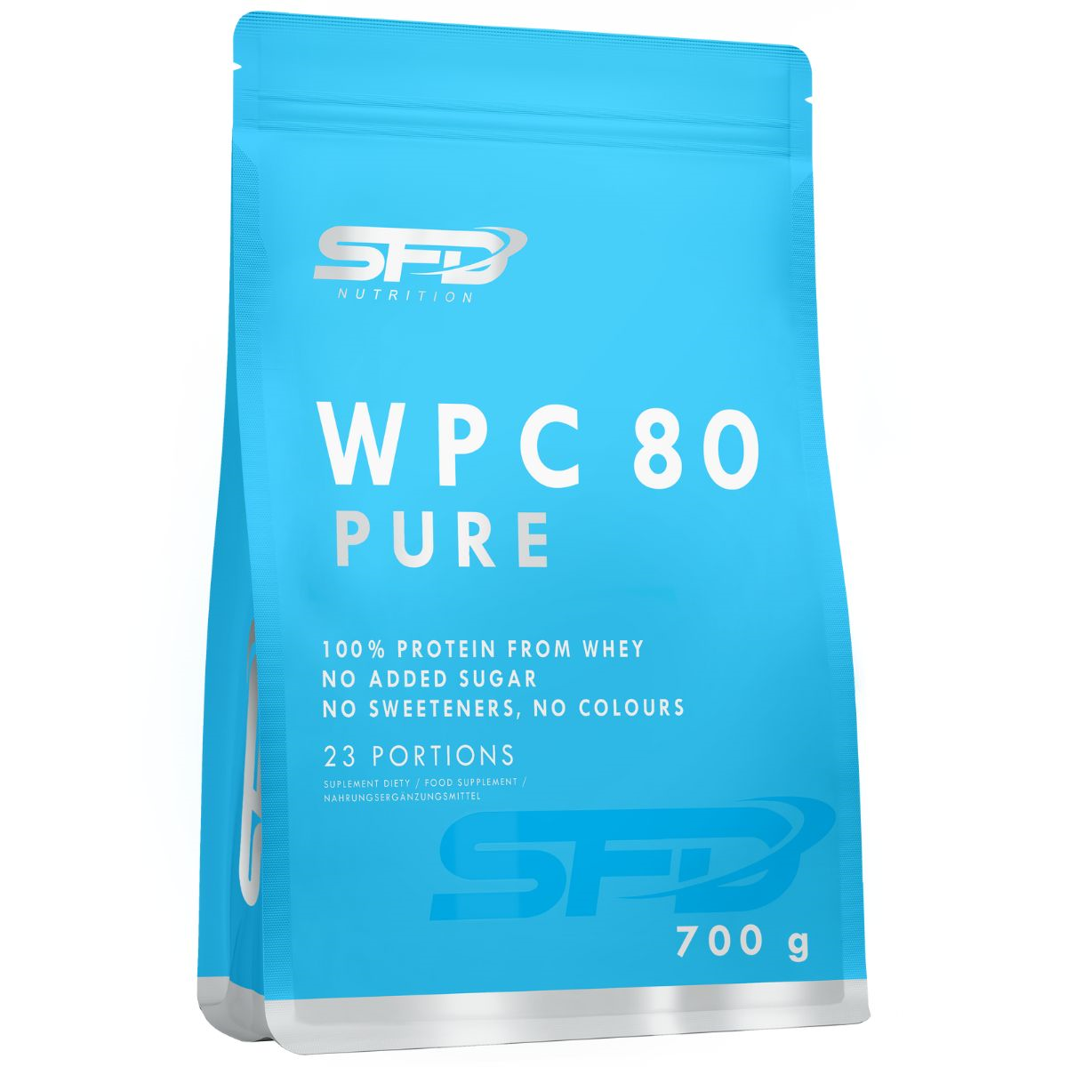 SFD NUTRITION WPC 80 PURE це концентрат сироваткового протеїну без додавання цукру, підсолоджувачів, глютену та непотрібних добавок. Кожна порція містить до 24 г корисного білка з натуральним смаком, що є чудовим джерелом незамінних амінокислот для активних людей, спортсменів та всіх, хто займається регенерацією та побудовою тіла.