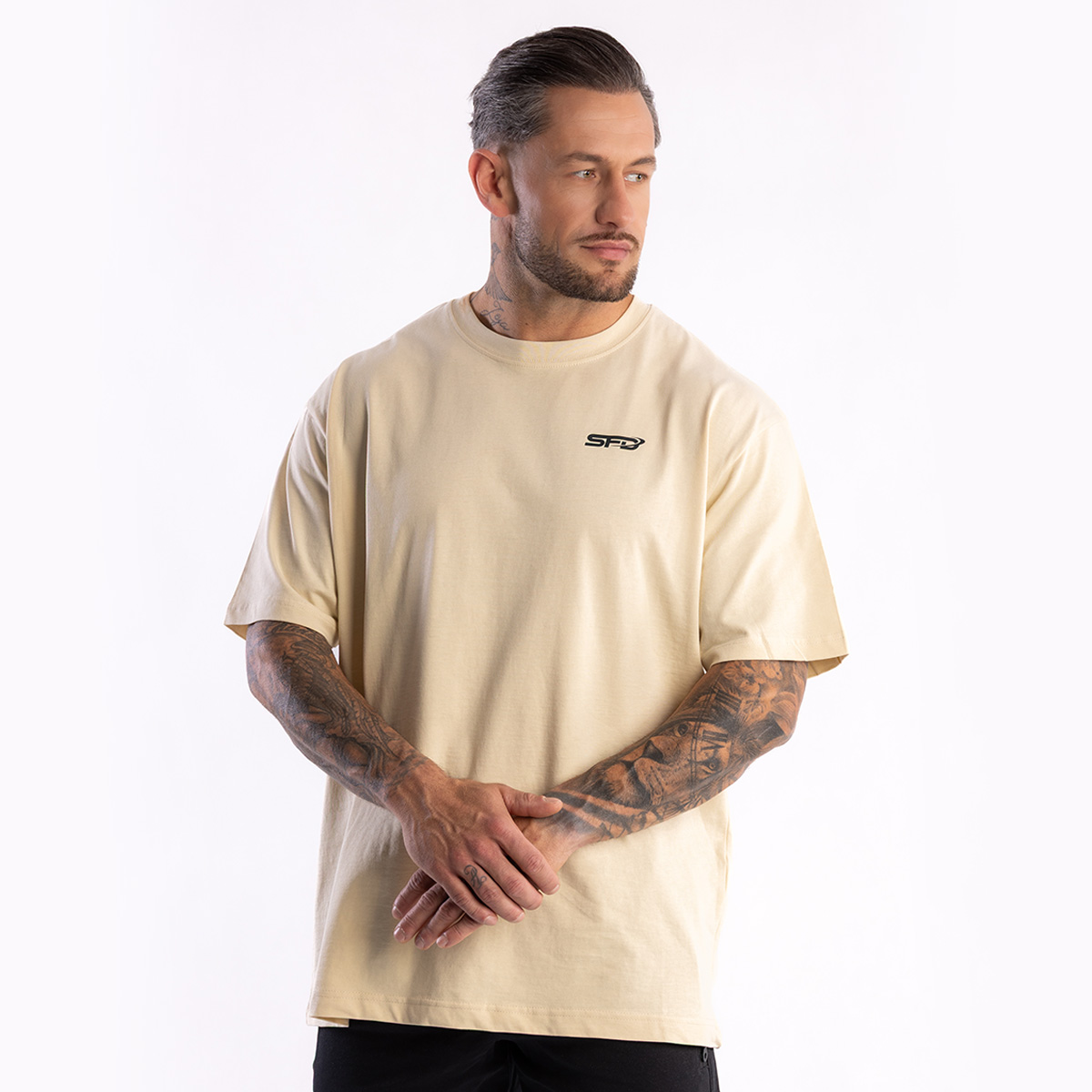 SFD T-SHIRT CORE OVERSIZE CREAM — це не просто звичайна футболка, а справжній елемент вираження твого стилю, що ідеально вписується у світ фізичної активності та спортивного духу.