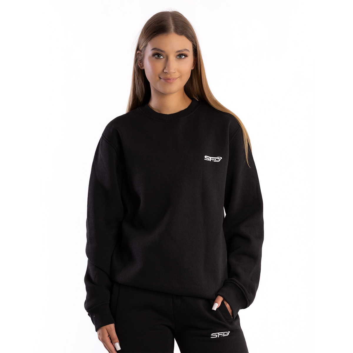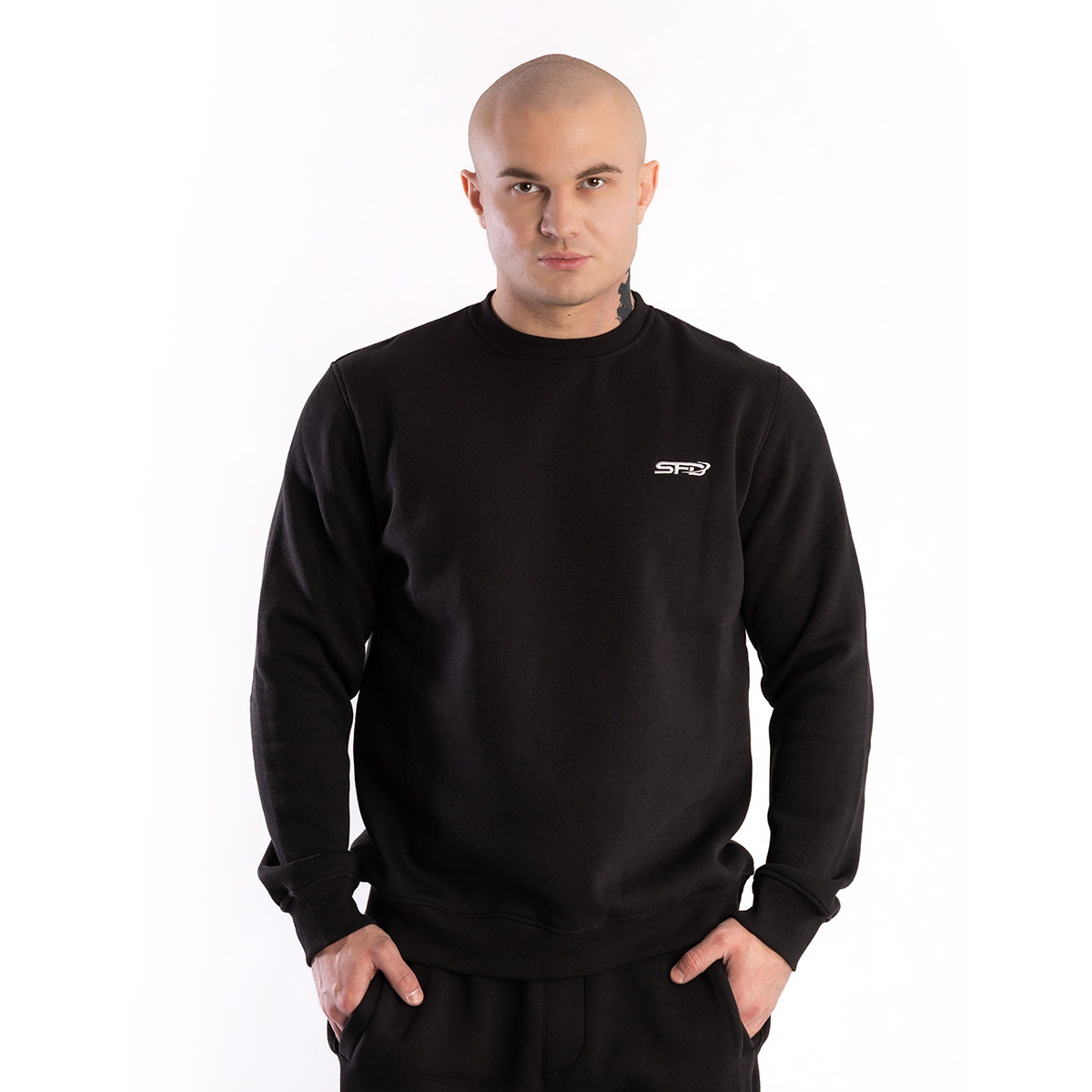Вишитий логотип SFD, акуратне оздоблення V-вставки на комірі, манжети та нижній край з еластичною резинкою, а також посилені шви — ми знаємо, що деталі мають значення. Висока якість матеріалу, комфорт носіння та функціональність роблять UNISEX СВІТШОТ CORE BLACK синонімом нової якості в SFD.