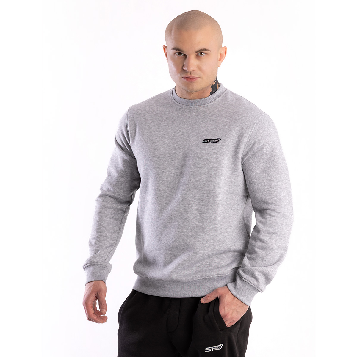 Вишитий логотип SFD, акуратне оздоблення V-вставки на комірі, манжети та нижній край з еластичною резинкою, а також посилені шви — ми знаємо, що деталі мають значення. Висока якість матеріалу, комфорт носіння та функціональність роблять UNISEX СВІТШОТ CORE GREY синонімом нової якості в SFD.